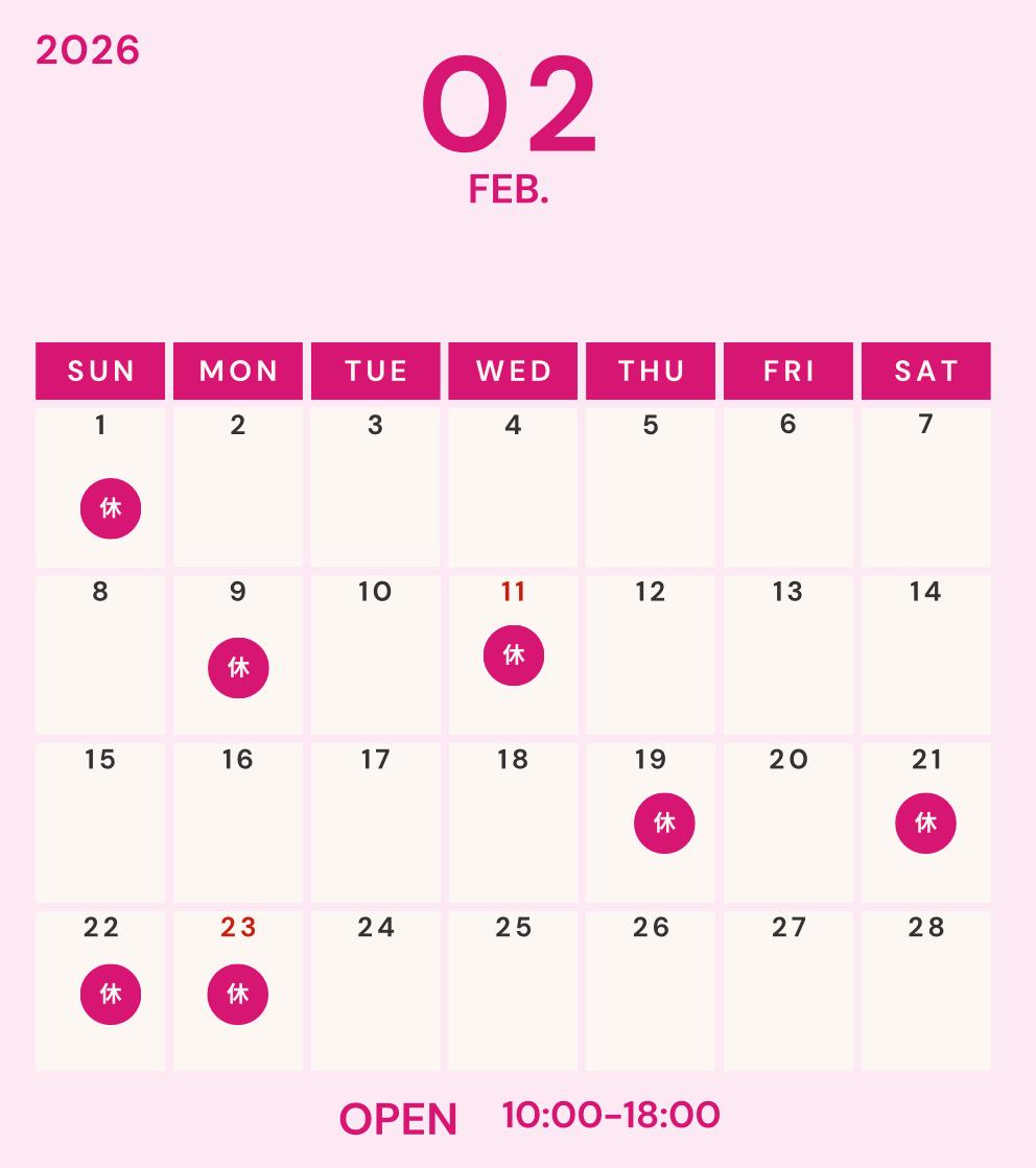 (毎週日曜日・第2・第4月曜日・不定休有)